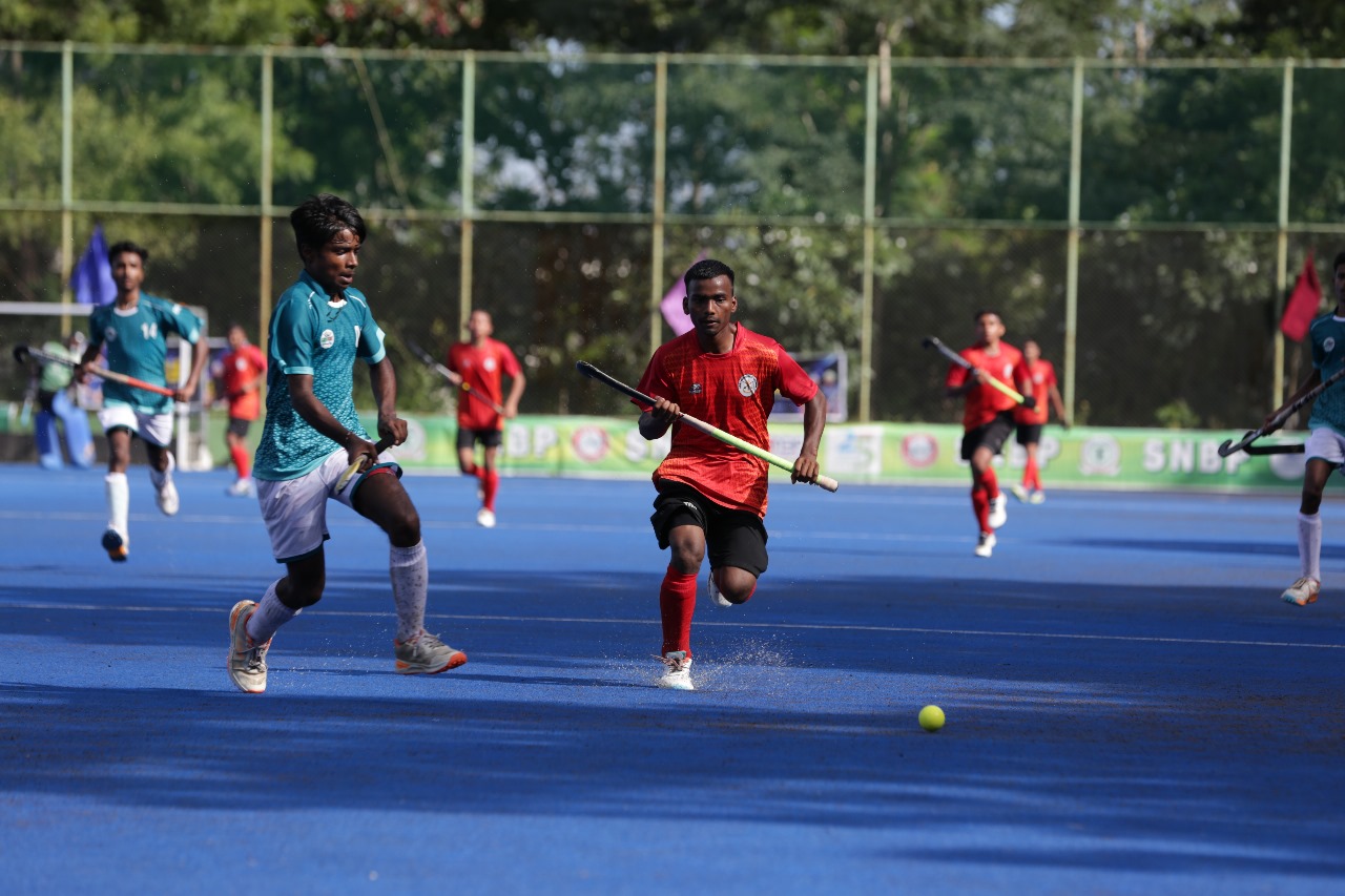 PUNE, October, 2025: Round Glass Academy, Army Boys Sports Company, Odisha Naval Tata Grassroots Academy and Gumanhera Academy booked their berths in the quarterfinals recording their second win in their respective groups in the 9th SNBP All India (Boys Under-16) Hockey Tournament on Day-2 at the Shiv Chhatrapati Sports Complex, Mhalunge-Balewadi.