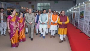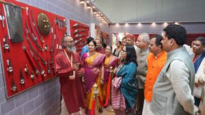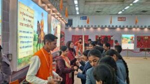 नवी दिल्ली – देशाच्या राजधानीतील भारत मंडपम् येथे झालेल्या भव्य ‘सनातन राष्ट्र शंखनाद महोत्सवा’तील ‘स्वराज्य का शौर्यनाद’ या प्रदर्शनीद्वारे राष्ट्रभक्ती, ईश्वरीकृपा आणि शौर्याची शक्ती यांचा अद्वितीय संगम साधला. भारत मंडपम प्रांगणातील हॉल क्र. १२ मध्ये १३ ते १५ डिसेंबर या कालावधीत या प्रदर्शनीमध्ये शिवकालीन शस्त्रप्रदर्शन, वंदे मातरम प्रदर्शन, आध्यात्मिक मूल्य असलेल्या वस्तूंचे प्रदर्शन, यांसह ग्रंथप्रदर्शनही लावण्यात आले होते.