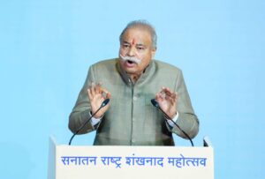 ते देशाची राजधानी दिल्ली येथील ‘भारत मंडपम्’ येथे ‘सेव्ह कल्चर सेव्ह भारत फाउंडेशन’ प्रस्तुत आणि ‘सनातन संस्था’ आयोजित भव्य ‘सनातन राष्ट्र शंखनाद महोत्सवा’च्या उद्घाटनप्रसंगी बोलत होते. महोत्सवाच्या प्रारंभी रामनामाचा सामूहिक जप करण्यात आला. शंखनाद आणि वेदमंत्र पठण झाल्यानंतर प.पू. शांतिगिरी महाराज, सनातन संस्थेचे संस्थापक सच्चिदानंद परब्रह्म डॉ. आठवले यांच्या आध्यात्मिक उत्तराधिकारीणी श्रीसत्शक्ति(सौ.) बिंदा सिंगबाळ आणि श्रीचित्शक्ति (सौ.) अंजली गाडगीळ, ‘सेव्ह कल्चर सेव्ह भारत फाउंडेशन’चे अध्यक्ष आणि भारताचे माजी माहिती आयुक्त श्री. उदय माहूरकर, सुदर्शन न्यूजचे प्रधान संपादक श्री. सुरेश चव्हाणके, हिंदु जनजागृति समितीचे राष्ट्रीय मार्गदर्शक सद्गुरु (डॉ.) चारुदत्त पिंगळे, सनातन संस्थेचे प्रवक्ते श्री. अभय वर्तक यांच्या शुभहस्ते दीपप्रज्वलन करून महोत्सावाचे उद्घाटन झाले.