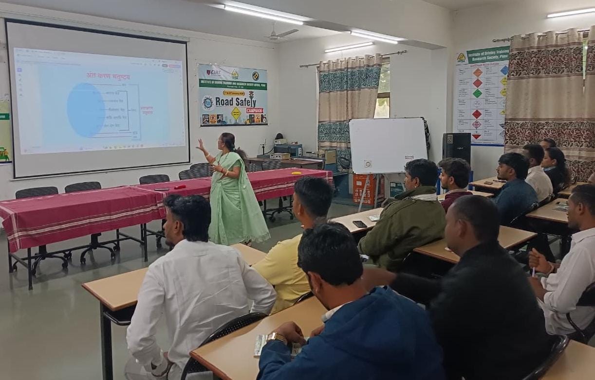 पिंपरी-चिंचवड येथील प्रसिद्ध ‘इन्स्टिट्यूट ऑफ ड्रायव्हिंग ट्रेनिंग अँड रिसर्च’ (IDTR) संस्थेत सनातन संस्थेच्या वतीने प्रशिक्षणार्थींना ‘तणावमुक्त मनस्थितीचे महत्त्व आणि उपाय’ या विषयावर मार्गदर्शन करण्यात आले. वाहन चालवणे ही केवळ शारीरिक कृती नसून, मानसिक एकाग्रतेची प्रक्रिया आहे. रुग्णवाहिका किंवा अवजड वाहने चालवताना शांत मन अपघात रोखण्यासाठी आवश्यक आहे, असे मार्गदर्शन सनातन संस्थेच्या प्राचार्य श्रीमती हेमलता खेडकर यांनी या प्रसंगी उपस्थित ८० प्रशिक्षणार्थींना मार्गदर्शन केले. यात रुग्णवाहिका चालक, अवजड वाहन चालक आणि कॅब चालक महिला प्रशिक्षणार्थींचा समावेश होता.