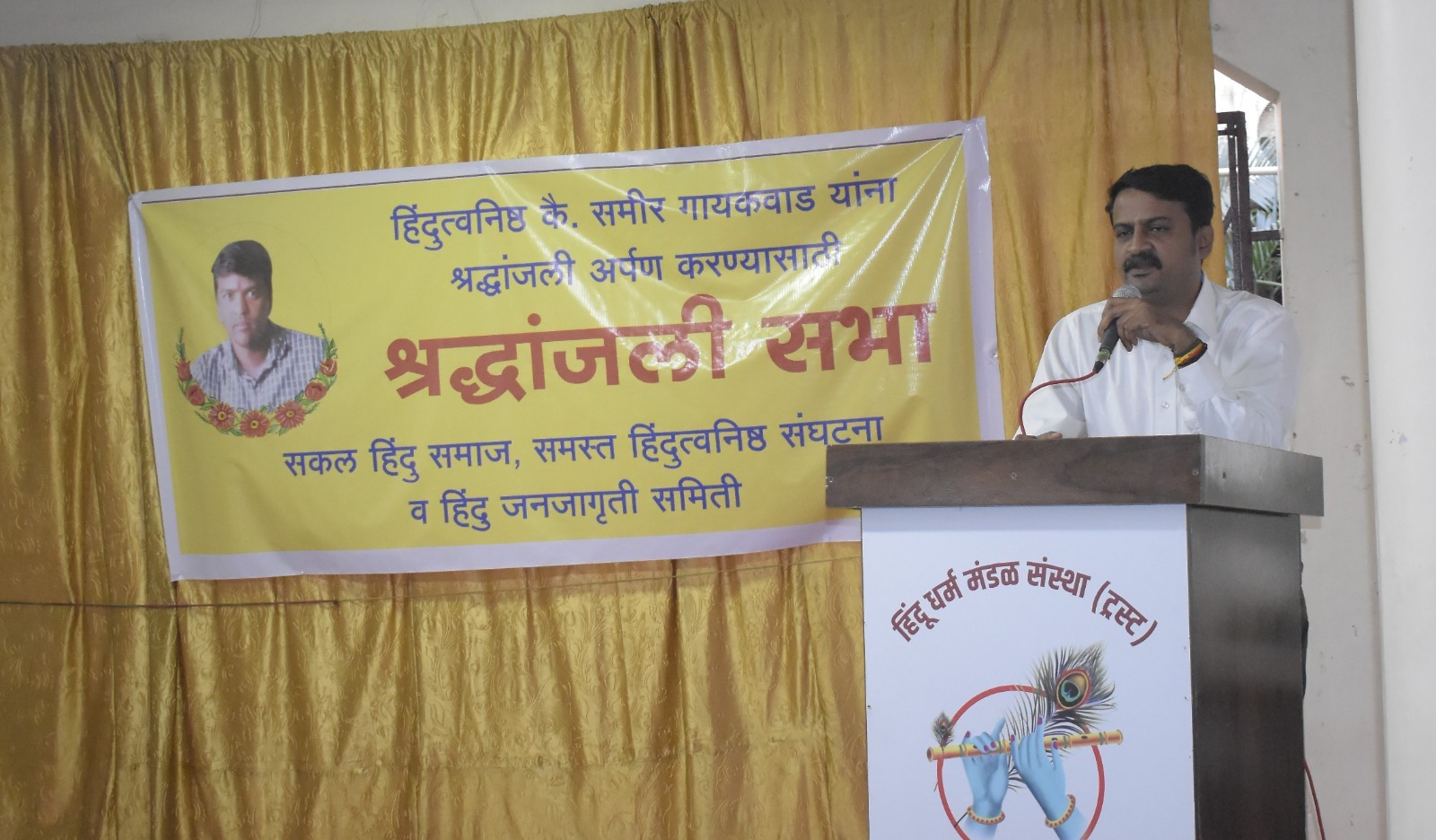 कोल्हापूर – निष्पाप असलेल्या हिंदुत्वनिष्ठ कै. समीर गायकवाड कॉ. गोविंद पानसरे हत्या प्रकरणात प्रशासकीय व्यवस्था आणि पुरोगामी ‘इकोसिस्टिम’ यांच्या खोट्या आरोपांचा बळी ठरले. केवळ सनातन संस्थेचा साधक असल्याने त्यांना कारागृहात रहावे लागले आणि यात त्याचे निष्पाप कुटुंबियही भरडले गेले. तरी यापुढील काळात ‘समीरसारखे आणखी किती बळी आपण जाऊ देणार ?’ असा प्रश्न संतप्त प्रश्न उपस्थित करत समीर यांच्या कुटुंबियांना शासनाकडून ठोस साहाय्य मिळावे, अशी एकमुखी मागणी हिंदुत्वनिष्ठांनी केली. ही मागणी राधाकृष्ण मंदिर येथे कै. समीर गायकवाड यांच्यासाठी आयोजित श्रद्धांजली सभेत करण्यात आली. या सभेत शिवसेना उद्धव बाळासाहेब ठाकरे पक्षाचे करवीर तालुकाप्रमुख श्री. राजू यादव यांनी कै. समीर यांच्या कुटुंबियांसाठी आर्थिक साहाय्य घोषीत केले.