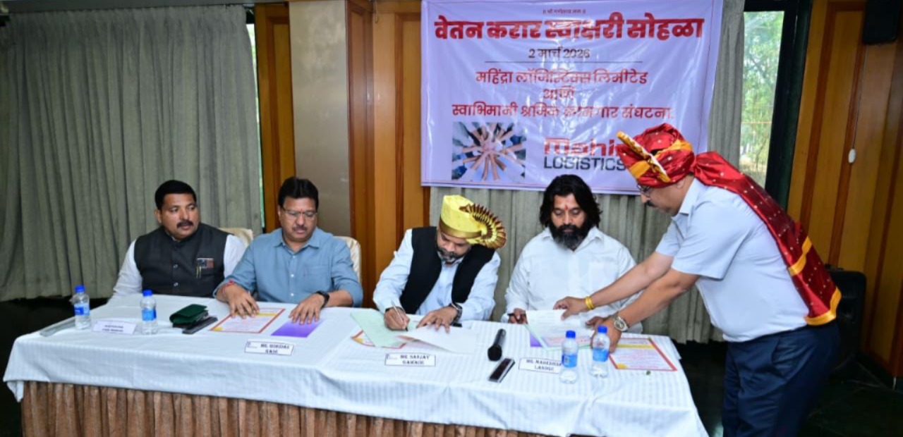 पिंपरी-चिंचवड: महिंद्रा लॉजिस्टिक लि. आणि स्वाभिमानी श्रमिक कामगार संघटना यांच्यातील तिसरा वेतनवाढ करार संपन्न झाला असून, हा लॉजिस्टिक उद्योगातील इतिहासातील सर्वात मोठा विक्रमी करार ठरला आहे. हा करार चाकण औद्योगिक वसाहतीत निघोजे येथील कंपनीच्या कार्यालयात आयोजित कार्यक्रमात औपचारिक केला गेला.या करारानंतर कामगारांनी समाधान व्यक्त केले आहे.