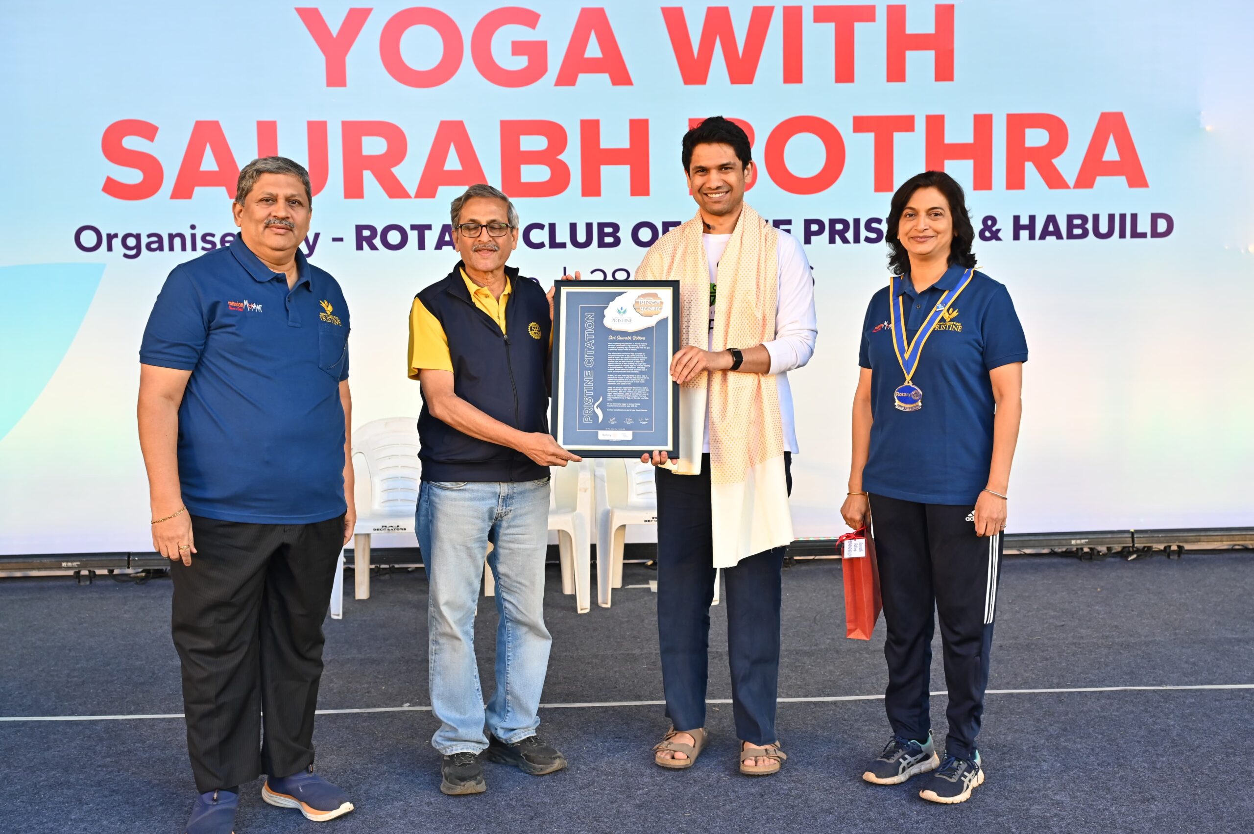 पुणे, ४ मार्च २०२६ : रोटरी पुणे प्रिस्टिन यांच्या वतीने आयोजित कार्यक्रमात प्रसिद्ध योगगुरू सौरभ बोथरा यांचा ‘परिवर्तन पुरस्कार’ देऊन गौरव करण्यात आला. रोटरी प्रांतपाल संतोष मराठे यांच्या हस्ते त्यांचा सत्कार करून मानपत्र प्रदान करण्यात आले.