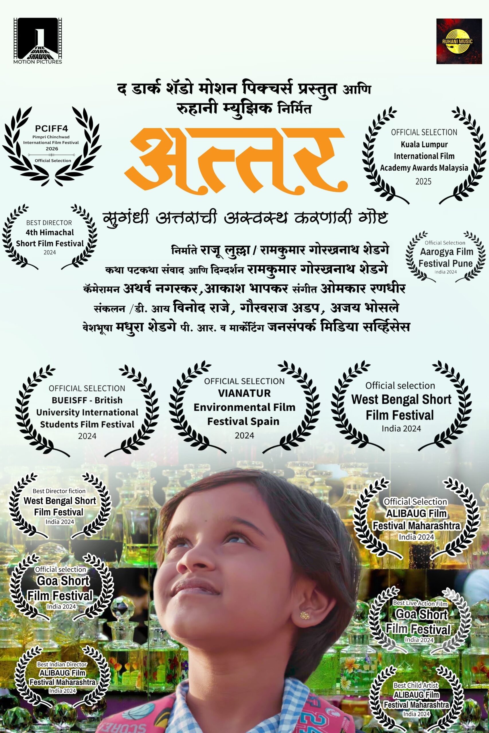 नवोदित कलाकारांना व्यासपीठ उपलब्ध करून देण्यासाठी आयोजित करण्यात आलेल्या सहाव्या केरळ लघुपट महोत्सवात मराठी चित्रपटसृष्टीसाठी अभिमानाची बाब घडली आहे. ‘अत्तर’ या लघुपटासाठी रामकुमार शेडगे यांना सर्वोत्कृष्ट दिग्दर्शनाचा पुरस्कार मिळाला, तर त्याच लघुपटातील बालकलाकार मीरा शेडगे यांना सर्वोत्कृष्ट बालकलाकाराचा बहुमान प्राप्त झाला.